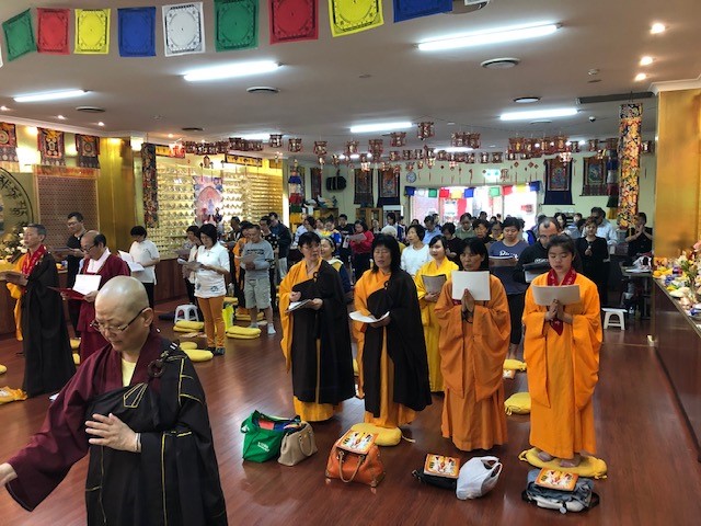 最新信息 News、法務回顧 Review 簡報—2022年4月10日 10 5 月, 2022 tbssydeny 今天,嚴山雷藏寺舉辦了唸誦【地藏經】活動。有三十多位同門朋友親臨寺廟參與了誦經現場。整個誦經過程持續了兩個半小時。 在這短短的二個半小時裡,雷藏寺大殿充滿了同門誦經的聲音。這聲音安穩在同一個頻率上,散發著一種淡定詳和的氣息,緩繞在大殿的每一個角落..這聲音流露出同門內心裡的那份虔誠,是那麼的倍受感動.. 相信,這一次的誦經,籍著【地藏經】的威力,攜帶著唸誦的虔誠力,非僅受益於祖先們,也化解與冤親債主纏身靈水子靈等的冤結。 感恩🙏 念誦【地藏經】功德無量! 悉尼嚴山雷葳寺—-